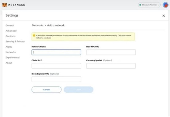 2、在网络列表的最底部,您会看到一个名为“添加网络”的选项。点击这个按钮,系统会触发下一步操作。添加网络功能是小狐狸钱包的核心特性之一,它允许用户扩展支持的区块链类型。在点击前,请确保钱包处于安全状态,避免任何潜在风险。