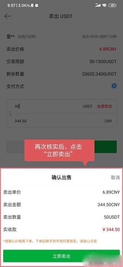 4. 在确认页面,仔细核实交易价格、出售数量和最终实收金额。确认无误后,点击“立即卖出”按钮提交订单。这一步是关键环节,建议在稳定网络环境下操作。
