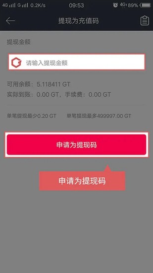 3、系统会自动跳转到提现页面。在这里输入您需要提现的具体金额,确保数字准确无误。完成输入后,点击下方的“申请为提现码”按钮。这一步是生成充值码的关键,建议核对金额以避免错误。