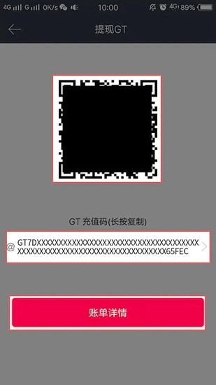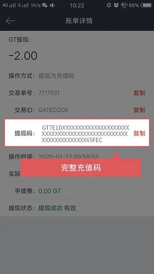 5、提现操作成功后,系统会显示完整的充值码信息。您可以长按屏幕上的充值码进行复制,或者手动记录保存。生成的充值码可以用于其他平台的充值或交易,非常便捷实用。