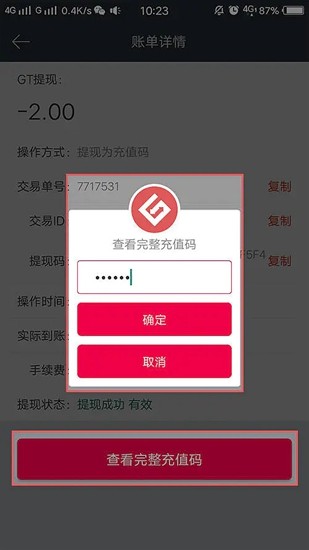 7、在提现详情页面,点击对应的提现记录。然后选择“查看完整充值码”按钮,输入您的资金密码进行身份验证。验证通过后,系统会再次显示完整的充值码供您使用。确保在安全环境下操作,保护您的账户隐私。