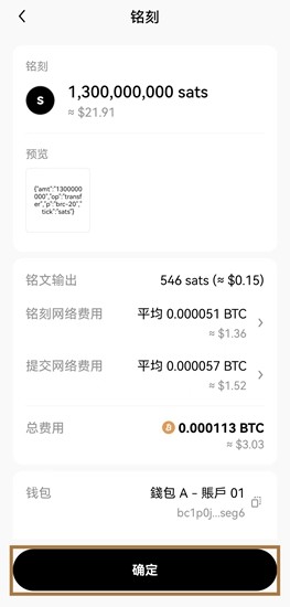 3. 铭刻过程启动后系统处理中,完成铭刻需等待大约3个区块确认时间。铭刻是指将代币信息写入比特币区块链的过程,系统会自动处理您的请求。等待3个区块确认是为了确保交易被永久记录在链上,这个过程通常需要几分钟时间,取决于网络拥堵情况。在此期间,请保持耐心并避免重复操作,以免造成冲突。