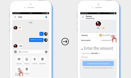 3. 默认的担保币种是比特币(BTC),如果需要发送其他币种,可以点击"币种"修改。