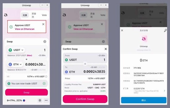 4、授权成功后,系统会提示“You can now trade USDT”,表示您已获得交易权限。这时输入您要兑换的具体数量,仔细核对信息后点击“Swap”按钮,再选择“Confirm Swap”进行最终确认。确认前建议检查Gas费用和预估时间,以确保交易顺利执行。整个过程设计得用户友好,imToken的集成让每一步都清晰可控。