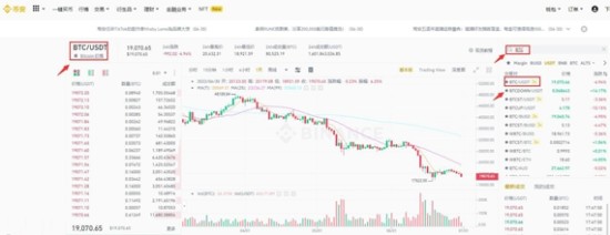 4、在右侧搜索框搜索比特币简称BTC,选择BTC/USDT交易对。搜索功能帮助快速定位目标货币,BTC/USDT是热门交易对,流动性高。选择时,确认当前市场价格和深度图,做出明智决策。